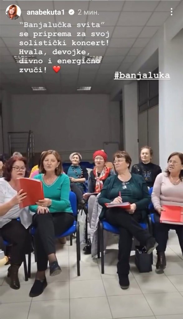 Poznata pjevačica folk muzike Ana Bekuta pohvalila je banjalučki ansambl „Vrbaska svita“ koji se ovih dana priprema za koncert povodom 8.marta Dana žena.