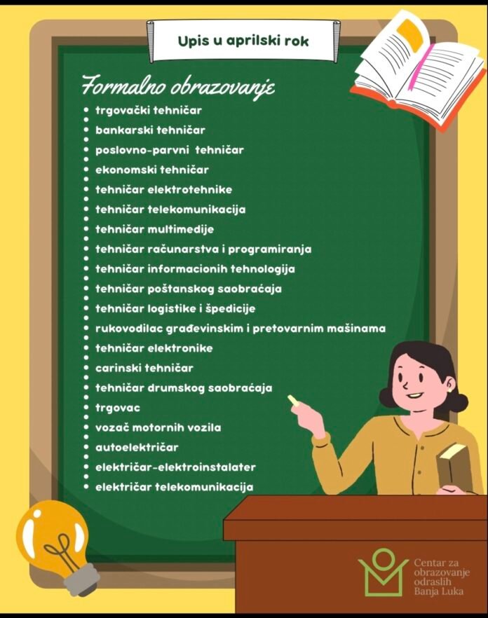 HomeBANJALUKADruštvoCentar za obrazovanje odraslih: Upis u novu generaciju polaznika formalnog obrazovanja