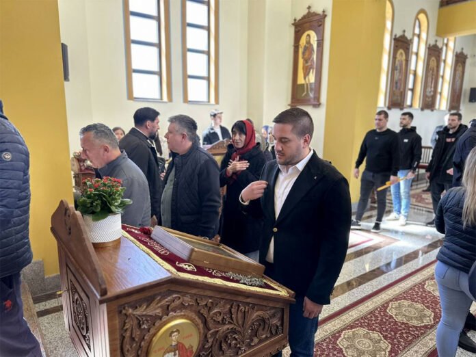 Šef Kluba odbornika PDP-a u Skupštini grada Banjaluke Nebojša Drinić prisustvovao je danas liturgiji u Crkvi Rođenja Presvete Bogorodice sa vjerujućim narodom u Dervišima. Nakon službe sa sveštenstvom, Drinić je obišao radove na izgradnji parohijske sale.