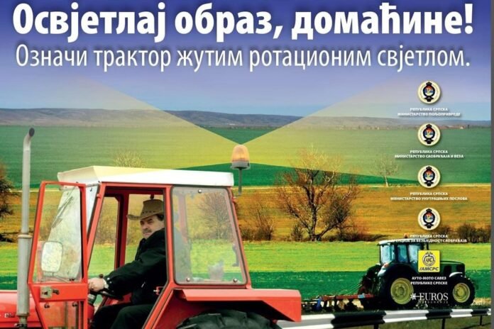 BANJALUKA – Grad Banjaluka aktivno učestvuje u provođenju preventivne kampanje pod nazivom “Osvjetlaj obraz, domaćine! Označi traktor žutim rotacionim svjetlom”.