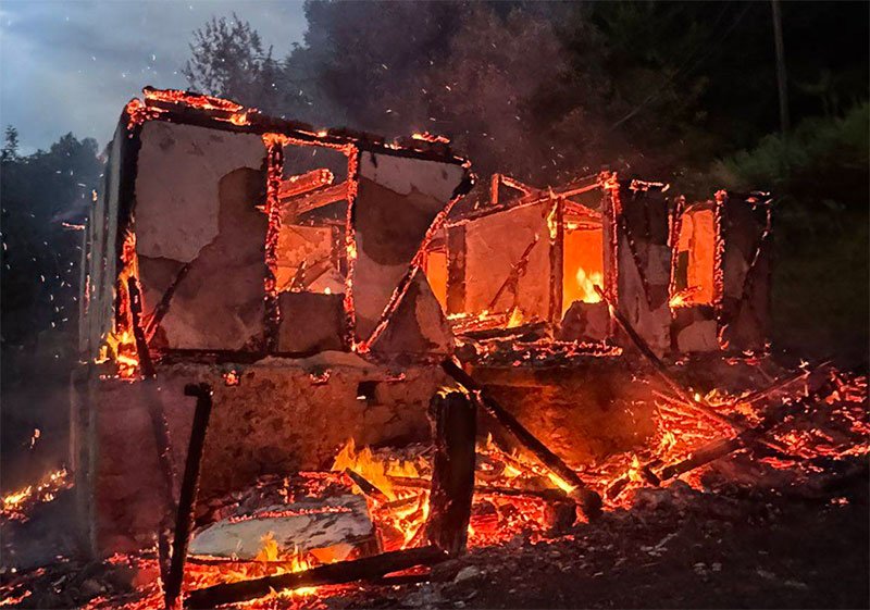 Kako su istakli vatrogasci, intervencija je bila u 19.45, a prema fotografijama, kuća je izgorjela u potpunosti.