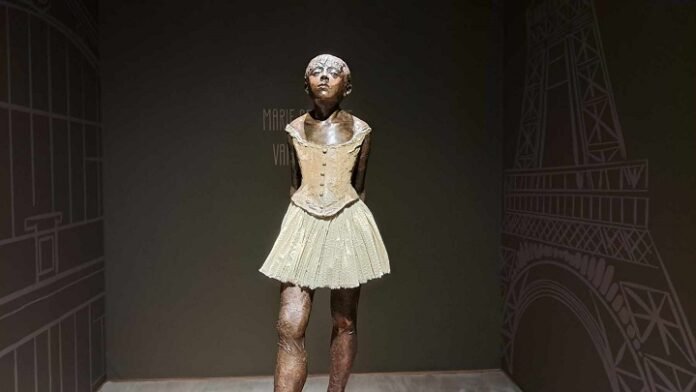 Izložena je jedna od njegovih najprepoznatljivijih skulptura “Mala četrnaestogodišnja plesačica” koja čini i centralni motiv izložbe.