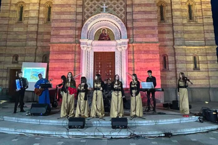 Učenici gradiške Gimnazije okupljeni u orkestar sekcije duhovne muzike večeras su na platou ispred Hrama Hrista Spasitelja u Banjaluci održali koncert povodom obilježavanja Zlatnog septembra, mjeseca podrške djeci oboljeloj od raka.
