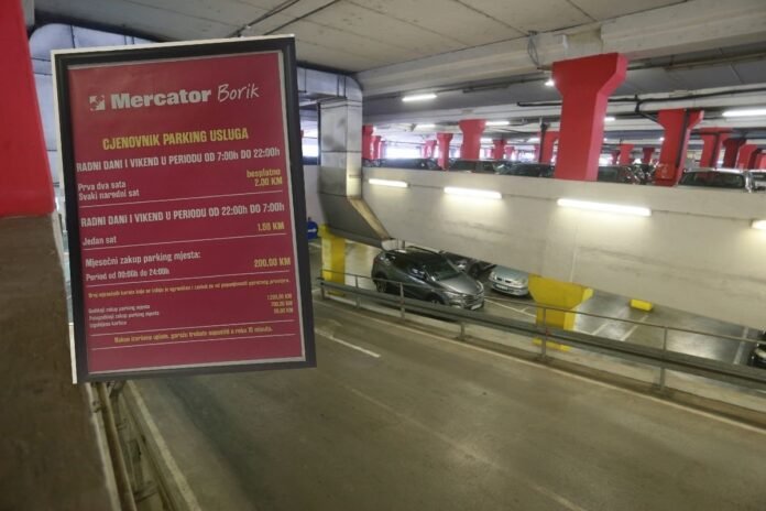 BANJALUKA – Tržni centar “Mercator” u Banjaluci uvodi naplatu parkinga, a u svom poslovnom objektu istakli su i cjenovnik parking usluga.