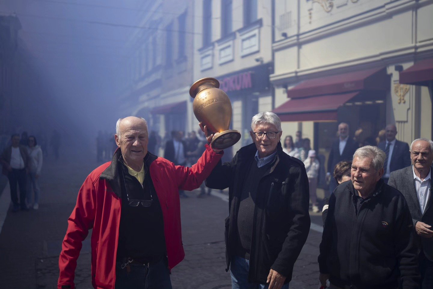 Dio ekipe okupio se u ulici Veselina Masleše u Banjaluci, popularnoj Gospodskoj ulici, Prošetali su Gospodskom ulicom sa peharom šampiona Evrope, a navijači su im spremili vatreni doček.