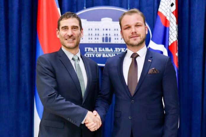 BANJALUKA – Draško Stanivuković, gradonačelnik Banjaluke i lider Pokreta Sigurna Srpska danas se u Banjaluci sastao sa Markom Rozenšildom, direktorom političkog odjeljenja Ambasade Sjedinjenih Američkih Država u BiH, i Todom Bulokom, direktorom Kancelarije Ambasade SAD u Banjaluci.
