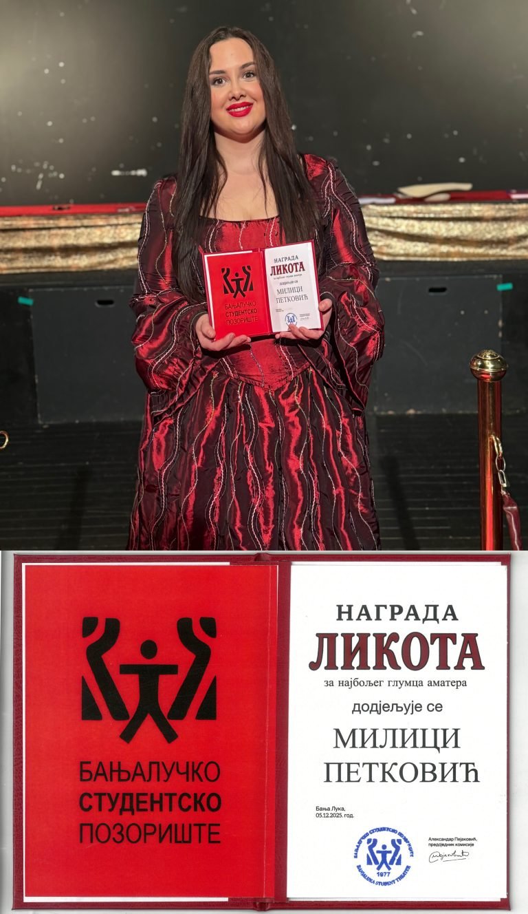 Dodaju da je šoseban i emotivan trenutak večeri bilo uručenje nagrade „Likota“ za najboljeg glumca amatera, koju je ove godine ponijela mlada i talentovana glumica Milica Petković, a nagradu je svečano uručila producent Studentskog pozorišta Neda Simić Žerajić.